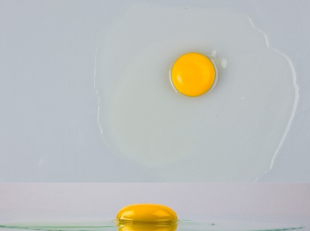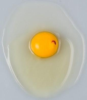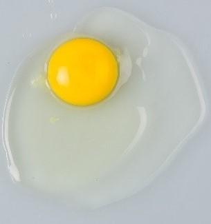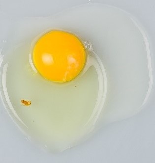 The criteria used to grade broken-out eggs include the height of the thick albumen as well as the yolk’s size and flatness. For a Grade AA egg, the thick albumen is in the shape of an egg and the yolk sits off the plate, as shown in Figure 4. For a Grade A egg, the albumen is losing its egg shape and sits lower on the plate. The edges of the thick albumen having a rounding of the edges. You cannot see under the yolk (see Figure 5). For a Grade B egg, the yolk is flattened, and the thick albumen is almost all gone (see Figure 6).