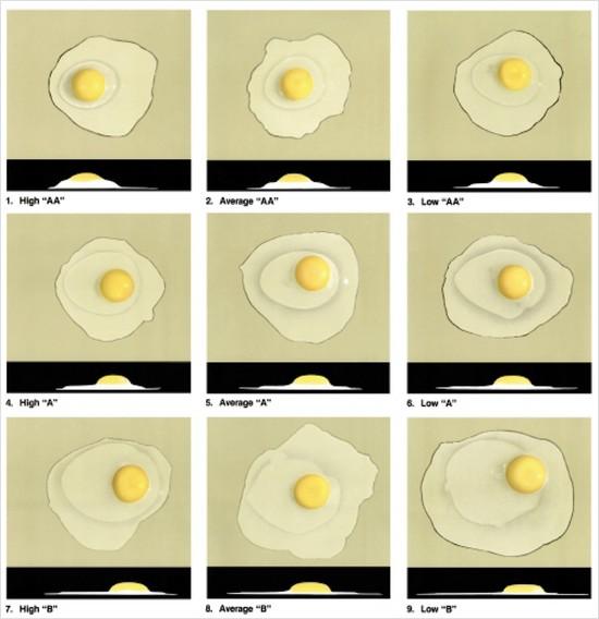 Contestants should evaluate each egg on its own merit and not compare it with other eggs in the class. If you set an incorrect standard, your grade scale could be off, causing you to incorrectly grade several eggs. The diameter of the outline of the thick albumen (top view) may give an indication of grade; however, the height of the thick albumen (side view) is the most important factor in determining grade.