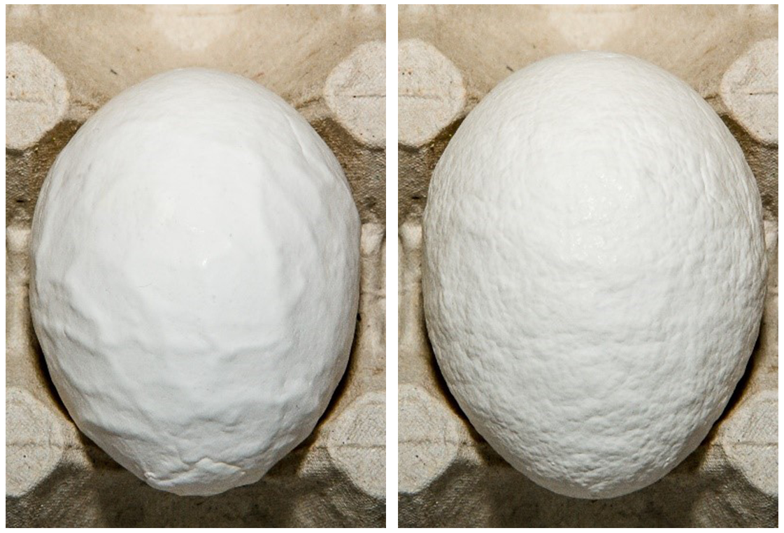 Grade A eggs may have slight rough areas to the shell that do not materially affect egg shape or the strength of the shell. Eggs with extremely rough areas that may be faulty in soundness or strength are Grade B (see Figure 8).
